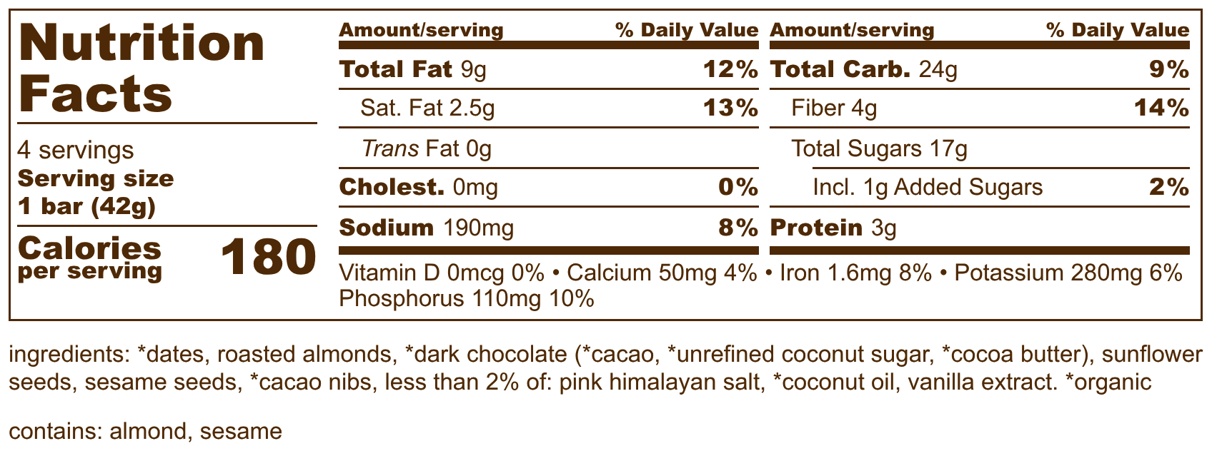 Indulge in the perfect balance of rich, velvety chocolate and a touch of Himalayan sea salt. Our Salted Dark Chocolate SEEDBAR™ is crafted with soft, chewy organic dates and premium 70% dark chocolate for just the right amount of sweetness. Crunchy organic cacao nibs add a delightful texture to every bite. Satisfying, sophisticated, and utterly crave-worthy—this bar is perfect any time of day.